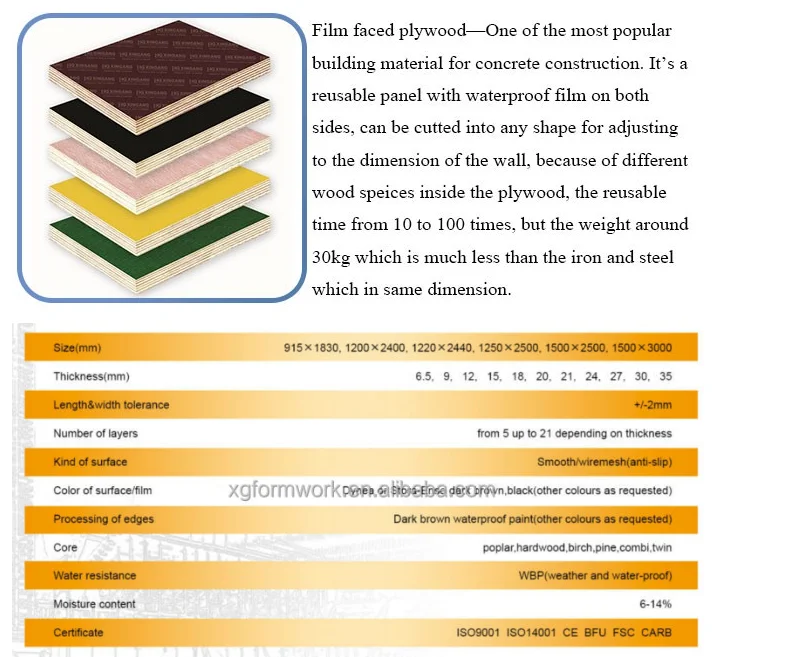 原産地:山東省、中国 ブランド名:XGNamed:フィルムフェイス合板 用途:アウトドア